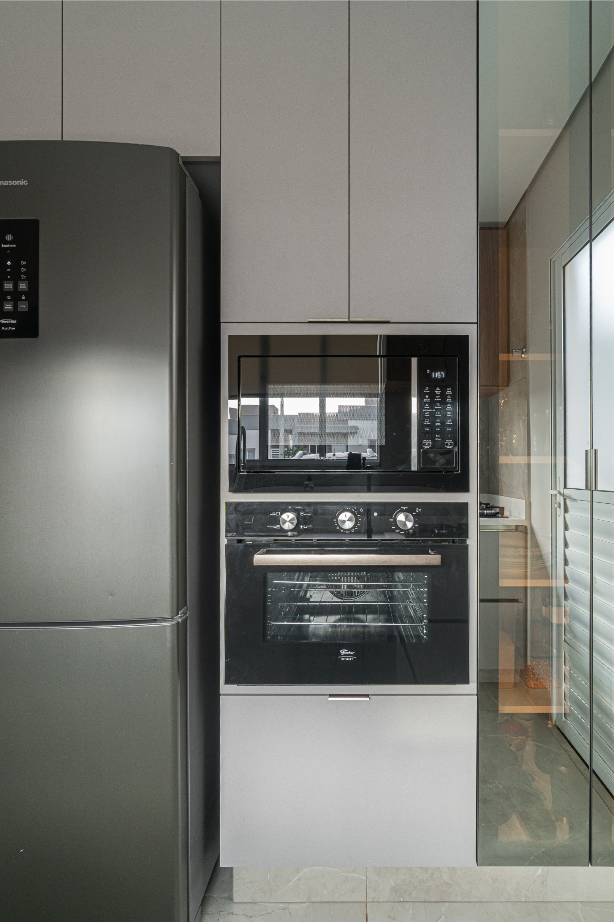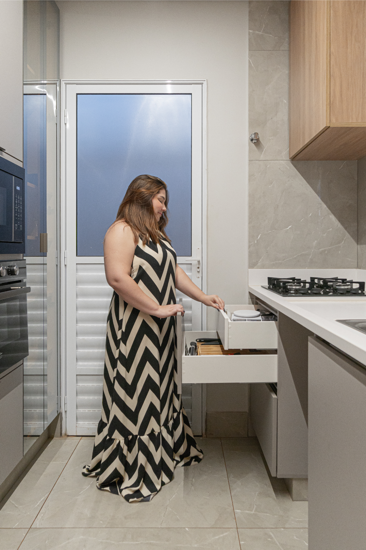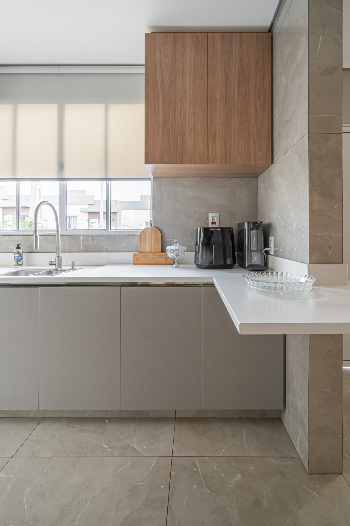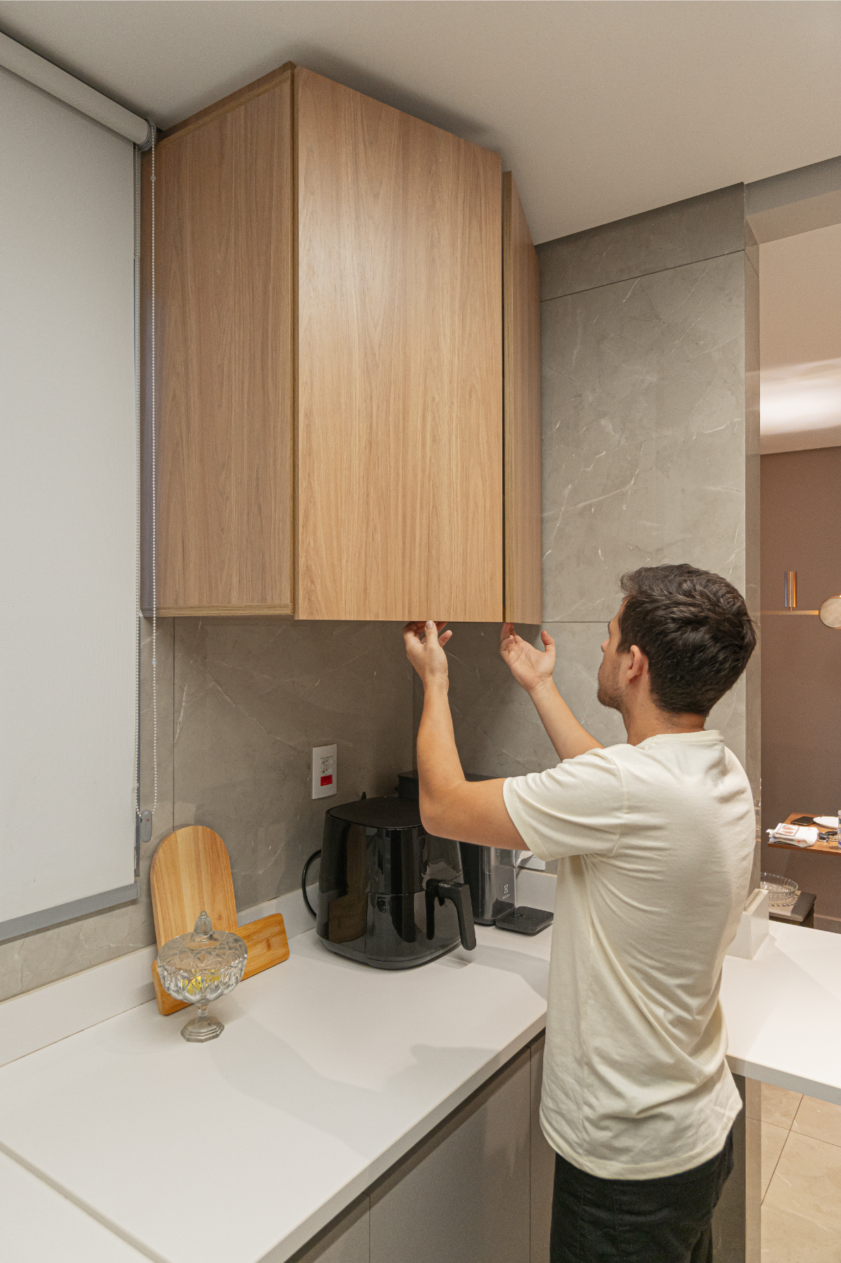 Na cozinha, o desejo por uma península foi o ponto de partida — e também o coração da transformação. No quarto, a missão era unir conforto e muito espaço de armazenamento, sem abrir mão da estética. E no banheiro, a sofisticação veio nos detalhes. Cada escolha aqui respeita a rotina dela, que trabalha em casa, e dele, que chega do trabalho buscando aconchego. Um projeto que prova que é possível ter um lar funcional, sofisticado e, acima de tudo, com a personalidade de quem vive ali.
