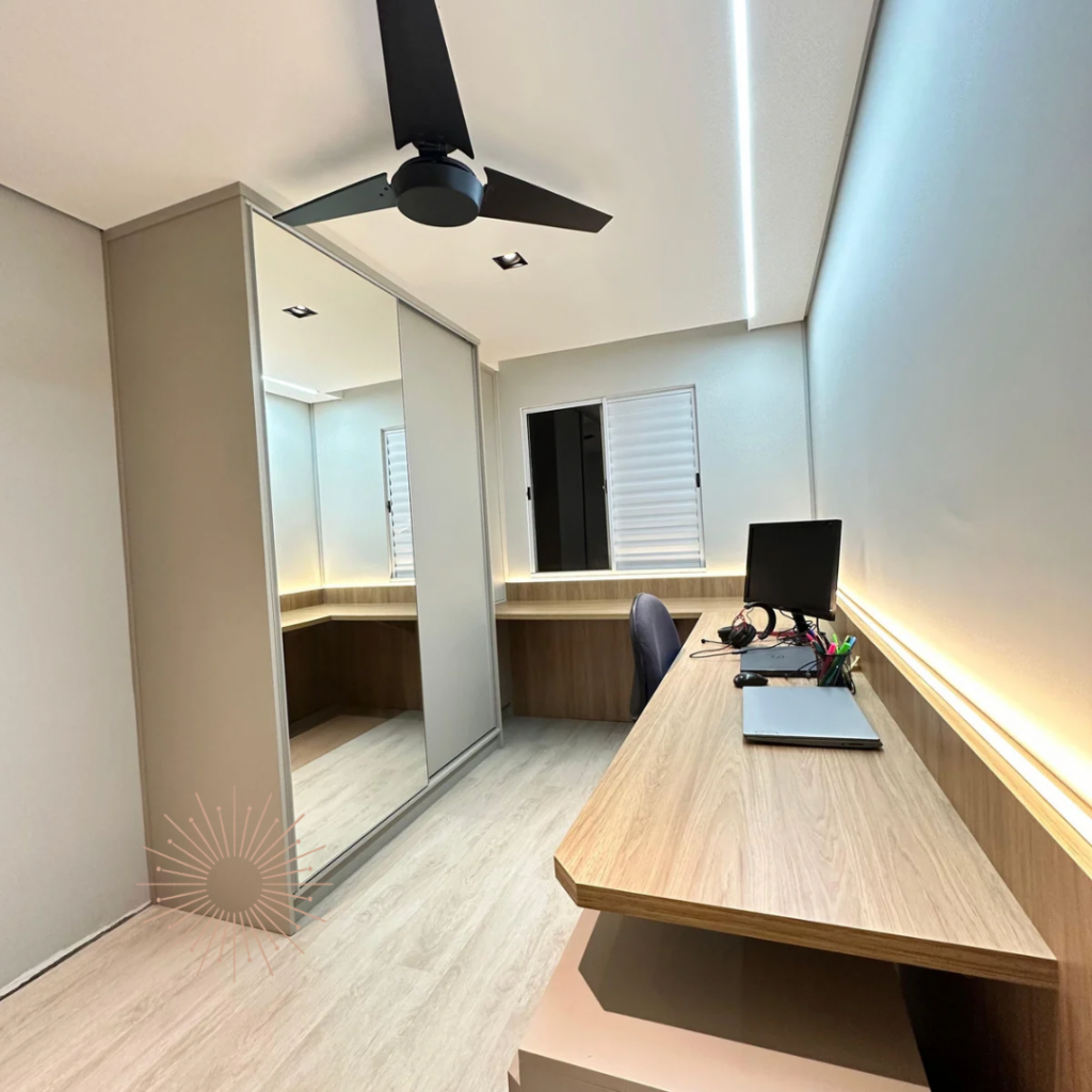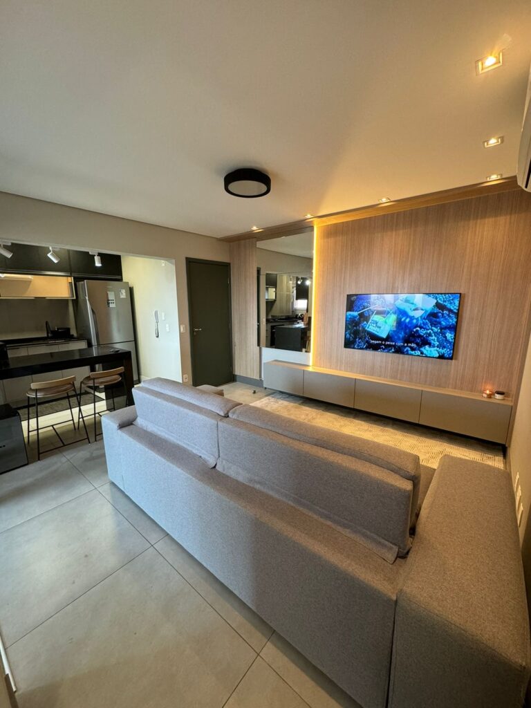 Cada detalhe deste projeto foi pensado para refletir a personalidade vibrante dos moradores. Na cozinha, substituímos a bancada da pia e renovamos os armários inferiores, garantindo mais praticidade no dia a dia. Na sala, um painel de TV trouxe aconchego e integração ao ambiente. E, para completar, criamos um estúdio sob medida para a proprietária, maquiadora, ter um espaço perfeito para produzir seus conteúdos. Um projeto que une funcionalidade e identidade em cada escolha!